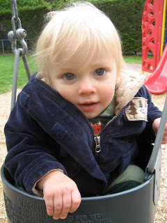 The morning was spent chasing around Aiden, a short naptime, and then we were off to meet Daddy for lunch (a very rare, but special, treat!). Aiden refused to sit in the highchair or eat...good thing we were eating outside and no one was sitting at the tables around us. He dug through my purse, ran around our table, and played with the chairs. I think Chris was ready to get back to work and send us on our way back home:)