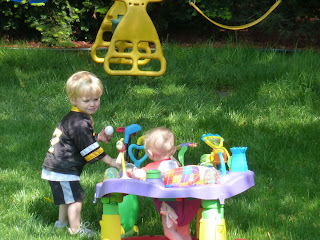 On Saturday, I headed off to do yoga in the park with a friend while Chris took the boys on a walk to see the train:) Aiden LOVES, LOVES, LOVES trains right now-good thing we live so close to the train station!!!! After every single one of us took a long nap, we spent another evening grilling out and playing outdoors.